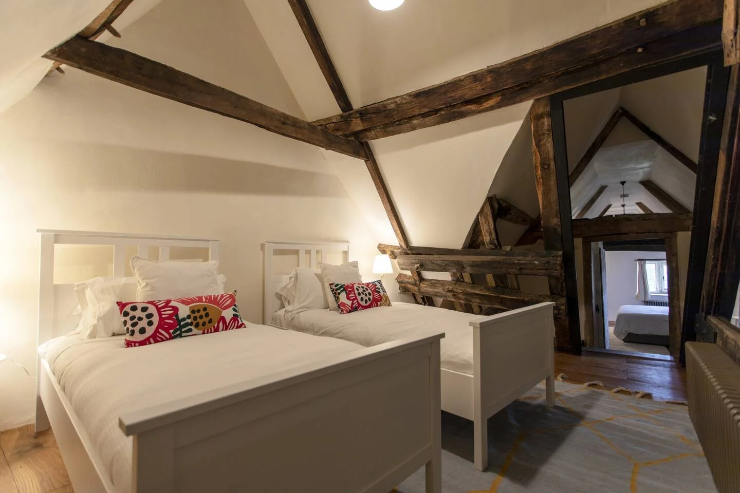 The snug is our cosiest room at the top of the house. Adjoined with another twin room, shared bathroom & views of original wood beams in the attic space.